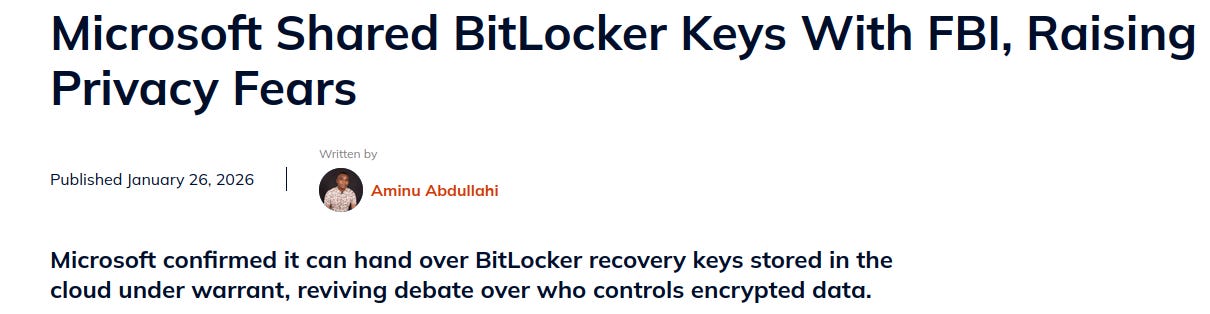 If Microsoft can be compelled to produce your BitLocker recovery keys, what does “full-disk encryption” actually protect?